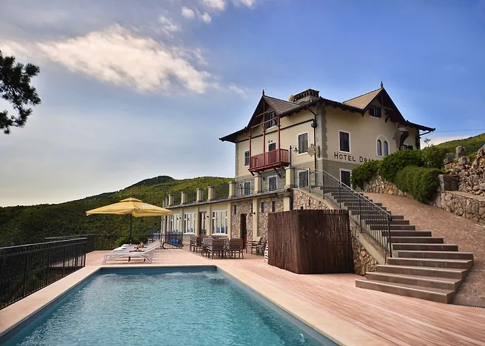 Hotel Draga di Lovrana, a 4 stelle, dista 3 km dalla Spiaggia Medveja e 2 km dalla Laurana. Dispone di una piscina esterna con una vista su Mare Adriatico.